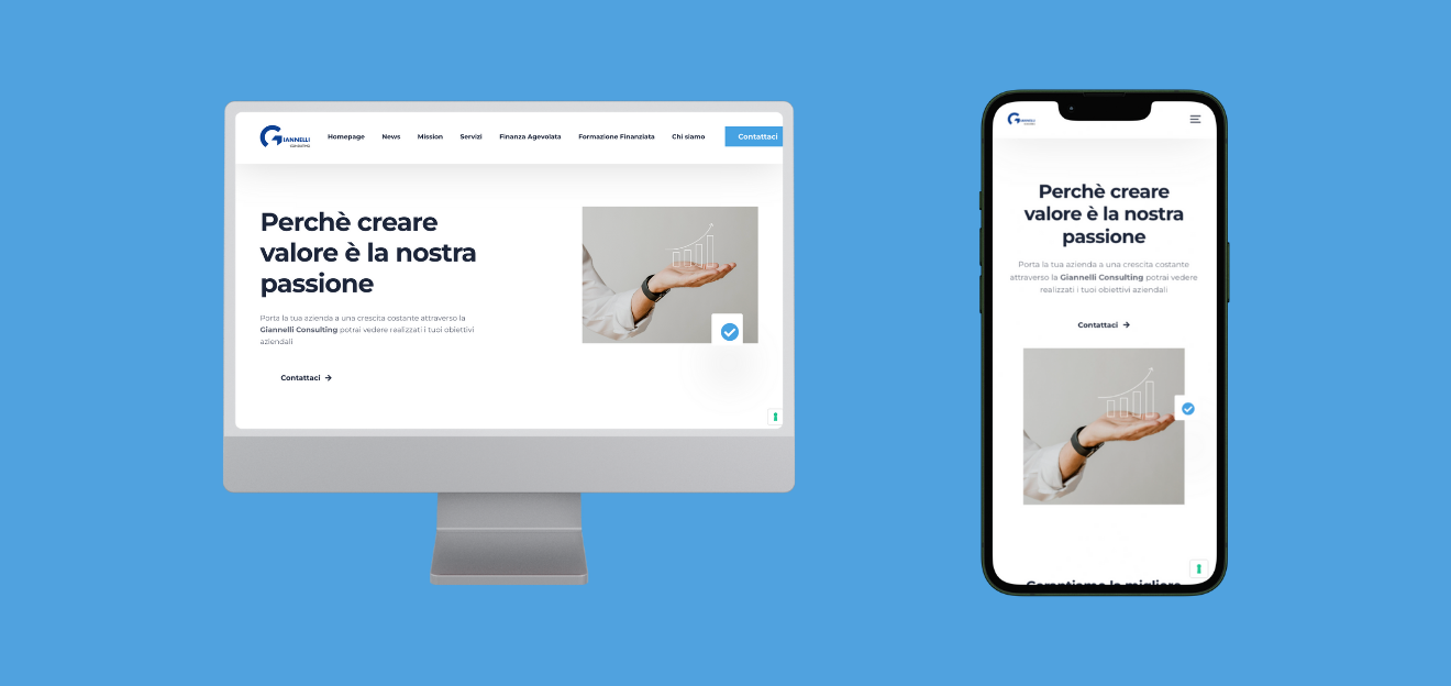 Giannelli Consulting è una realtà specializzata in consulenza aziendale e formazione. Il cliente necessitava di un sito web semplice, professionale e chiaro, che trasmettesse autorevolezza e competenza, ma al tempo stesso fosse facile da aggiornare in autonomia.